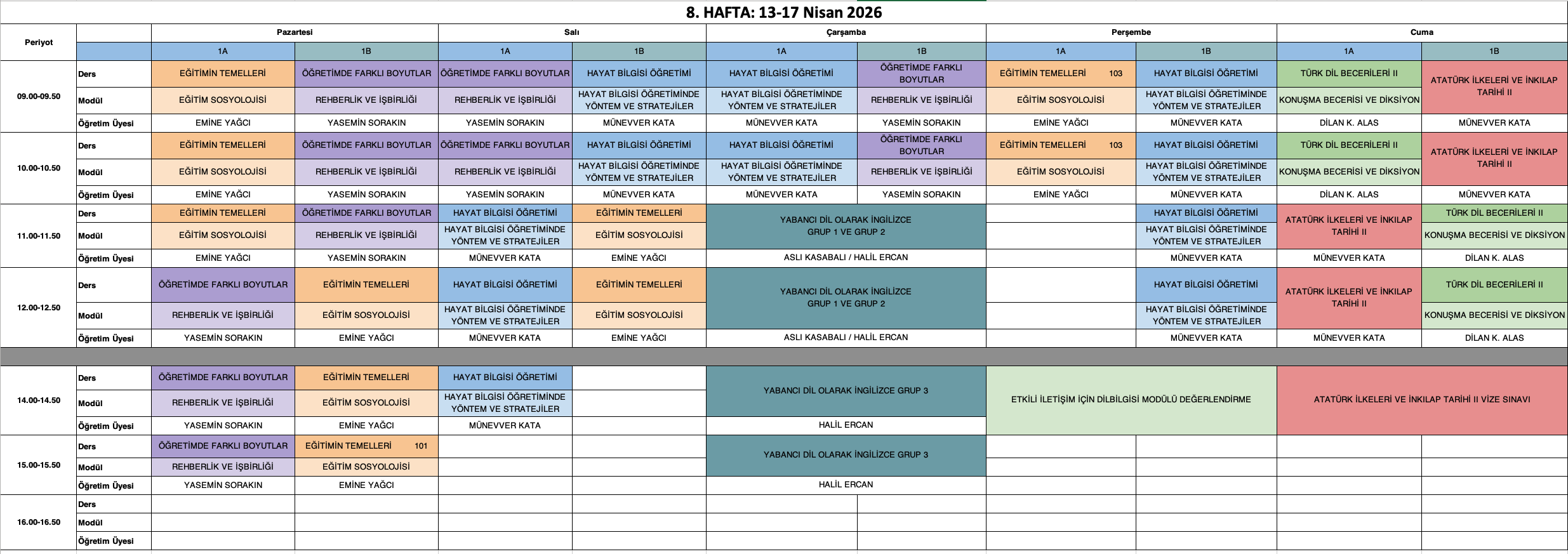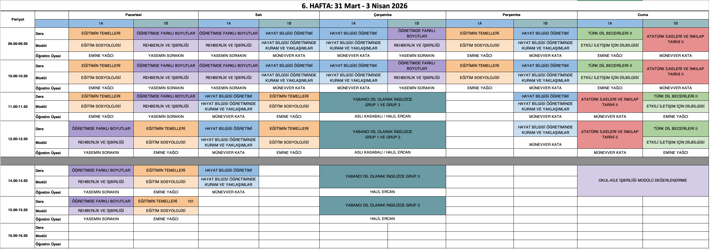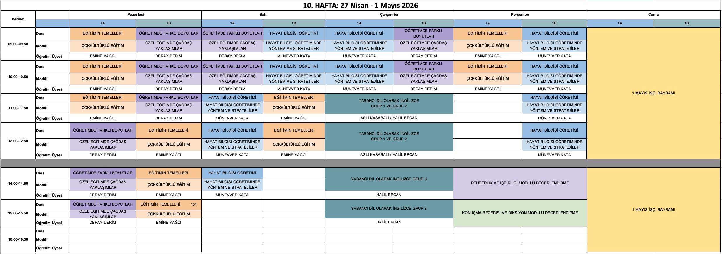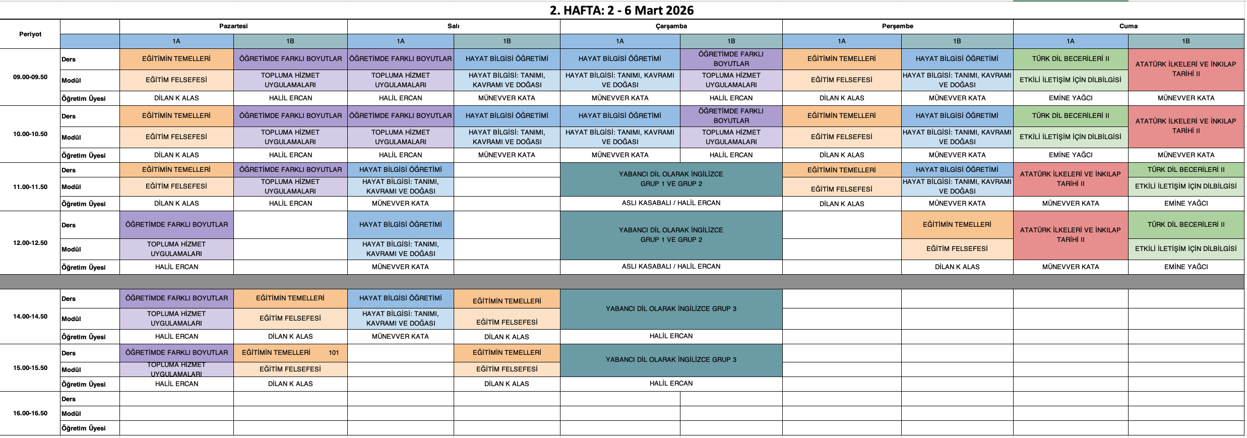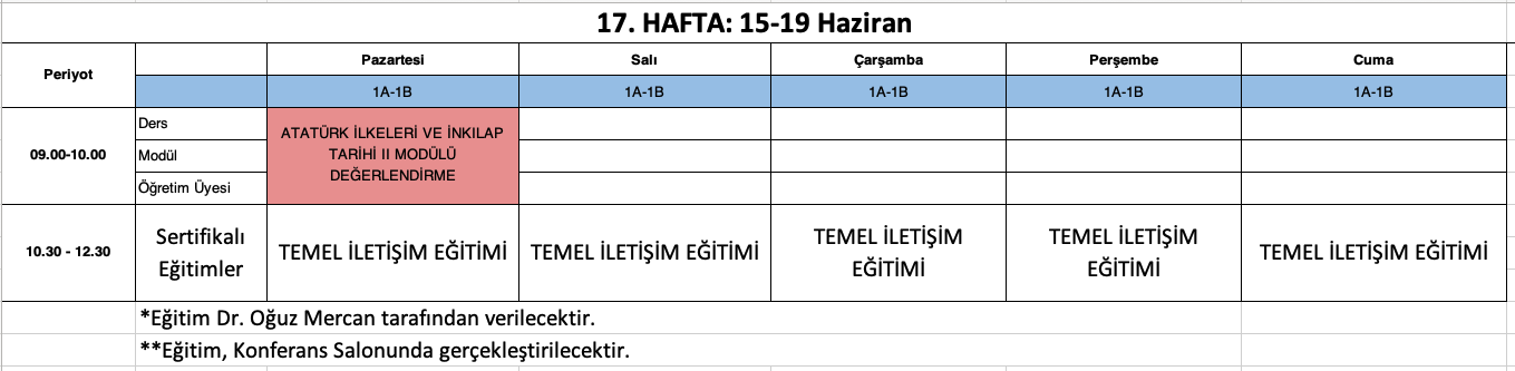 Derslik Bilgisi: Grup 1 öğrencileri Amfi 2, Grup 2 öğrencileri Amfi 3 numaralı sınıflarda derslere girecektir.