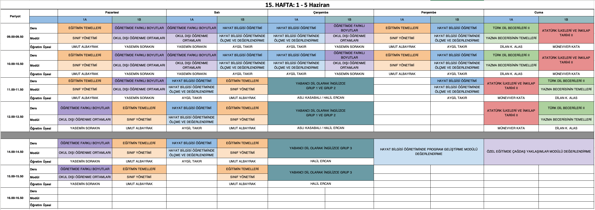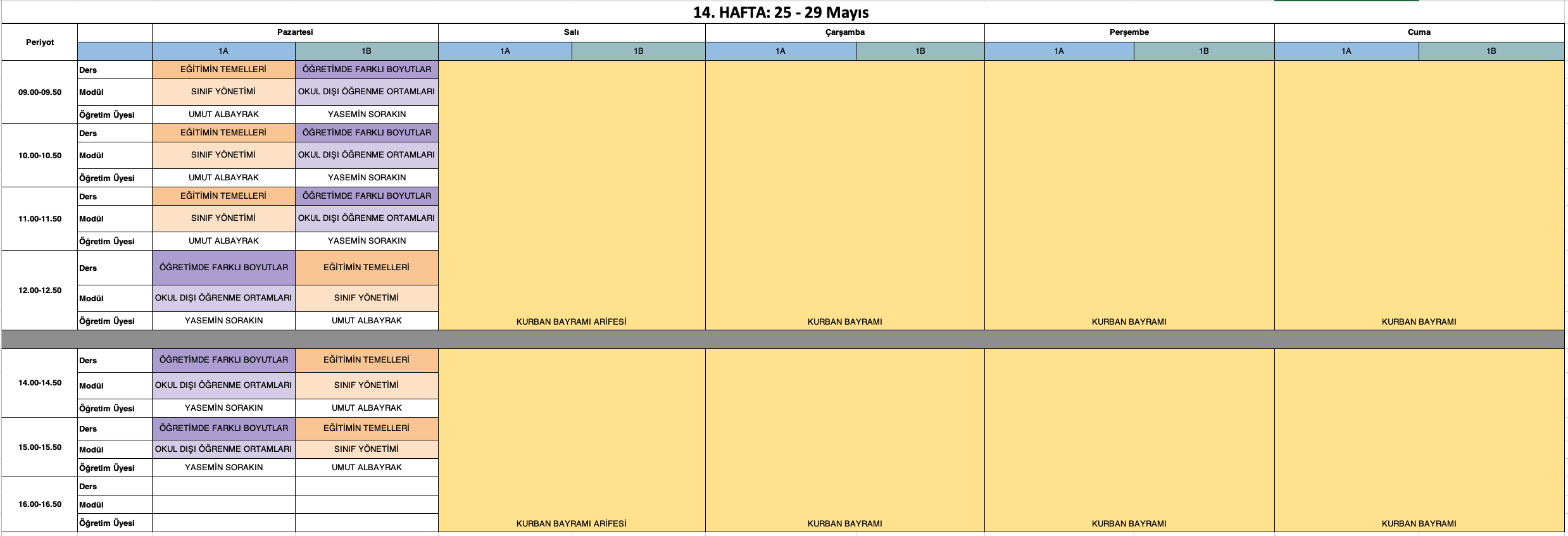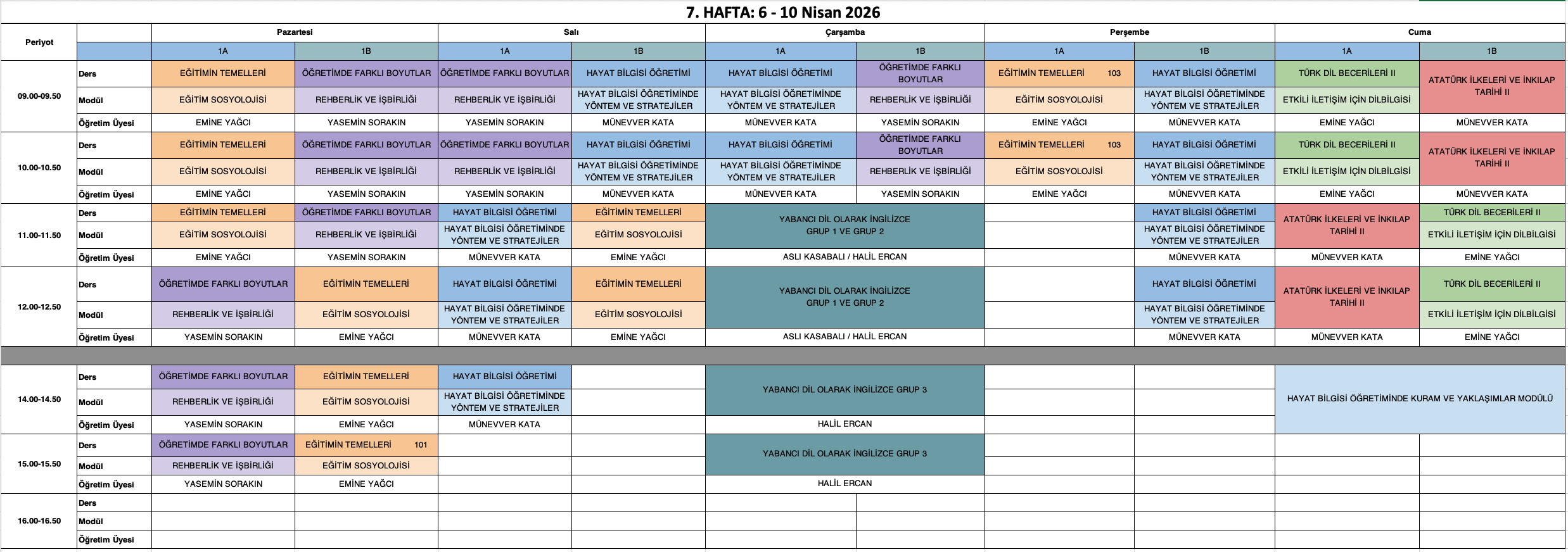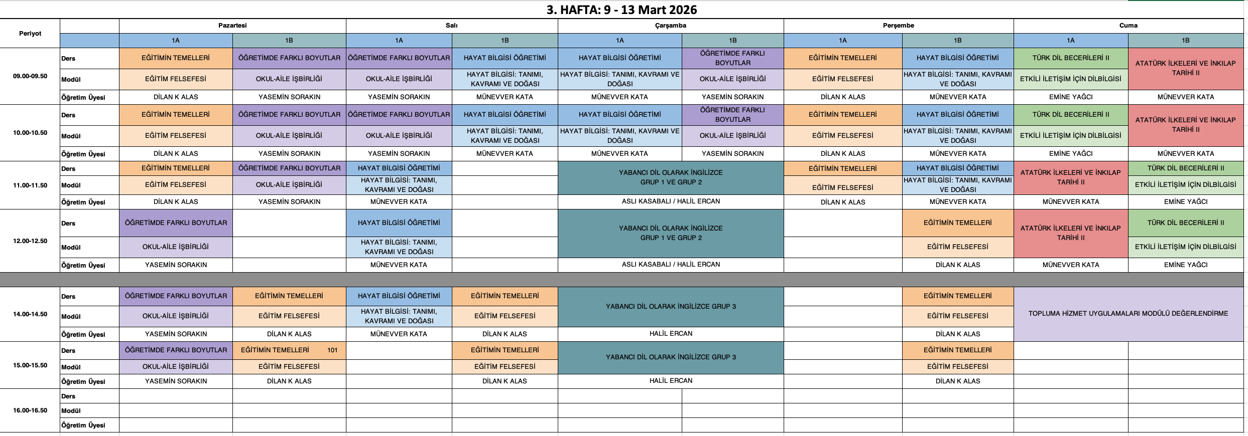Derslik Bilgisi: Grup 1 öğrencileri Amfi 2, Grup 2 öğrencileri Amfi 3 numaralı sınıflarda derslere girecektir.